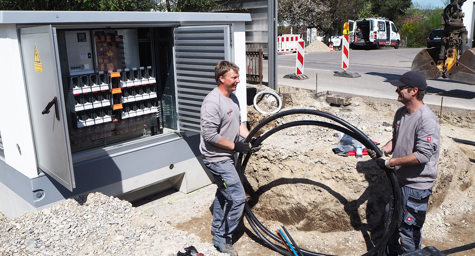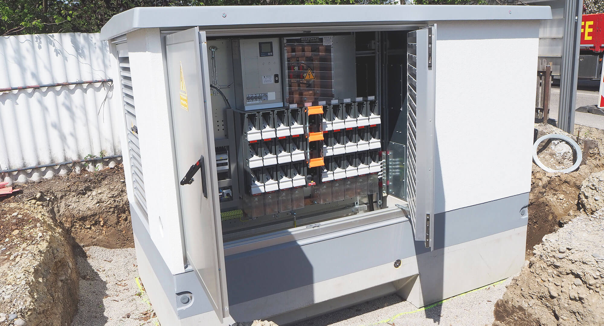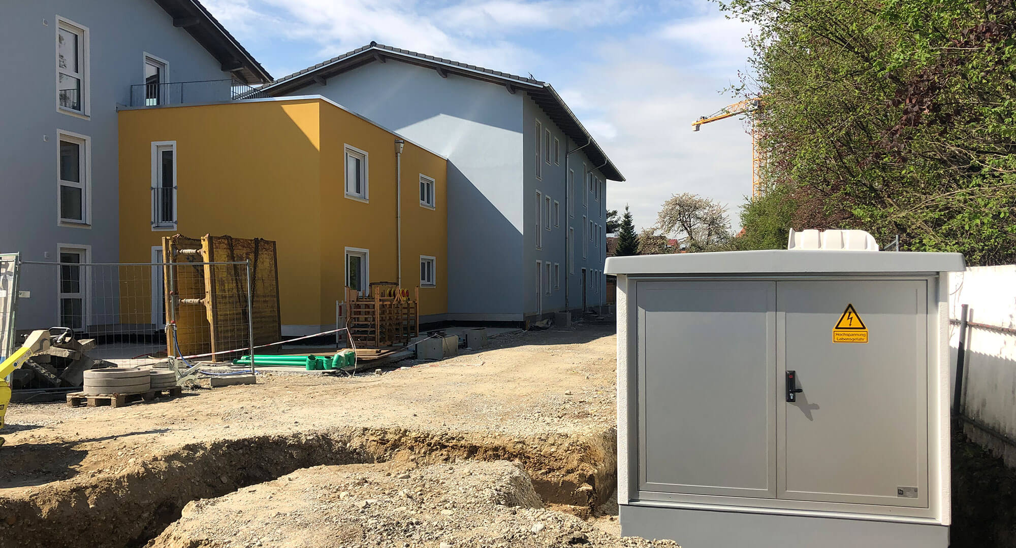 Wir feiern mit unserem neuen Trafohäuschen in der Münchner Straße eine Schnappszahl! Es handelt sich nämlich bereits um die 44. Station im Mittelspannungsnetz, die wir in Grafing installiert haben. Dadurch kann die benötigte Kapazität für die neu entstehende Bebauung in der näheren Umgebung, sowie für den Ausbau der Elektromobilität zur Verfügung gestellt werden. Das neue Trafohäuschen ist ein echtes Powerpaket – als erste Kompaktstation Grafings bringt sie 400kVA Leistung auf nur 3 x 2 Meter Grundfläche und das trotz umweltfreundlicher Luftisolierung!